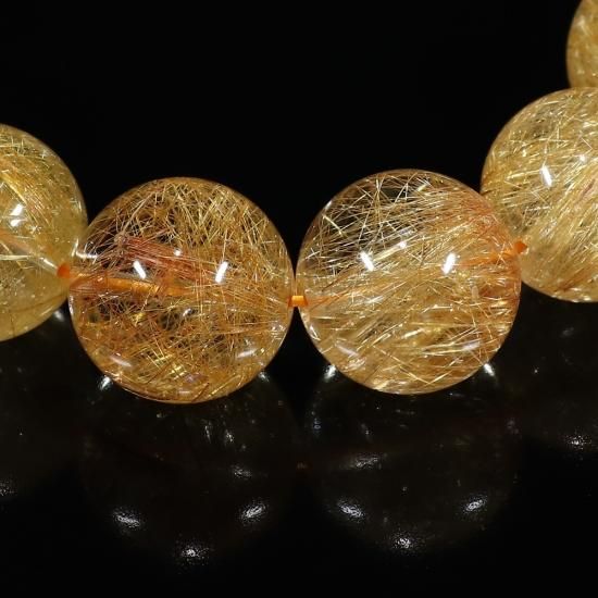 ゴールドルチルクォーツ 15mm〜16mm×14玉 手首のサイズ約18cm